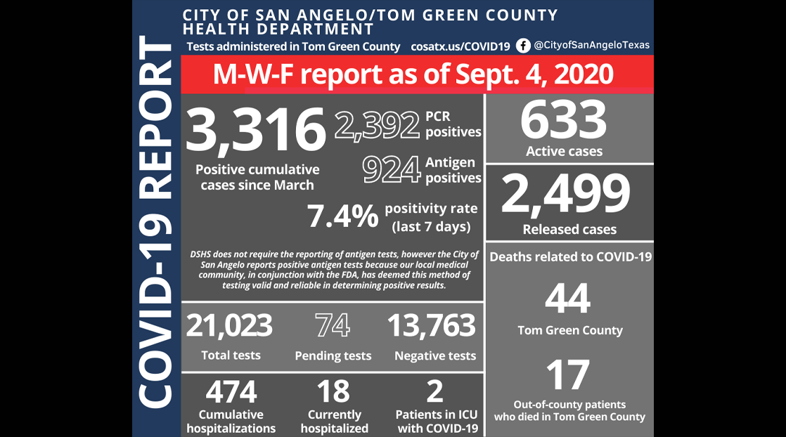 SAN ANGELO, TX — Hospitalizations continue to steadily drop as the San Angelo Health Department confirms less than 20 patients are currently hospitalized for coronavirus-related illnesses.