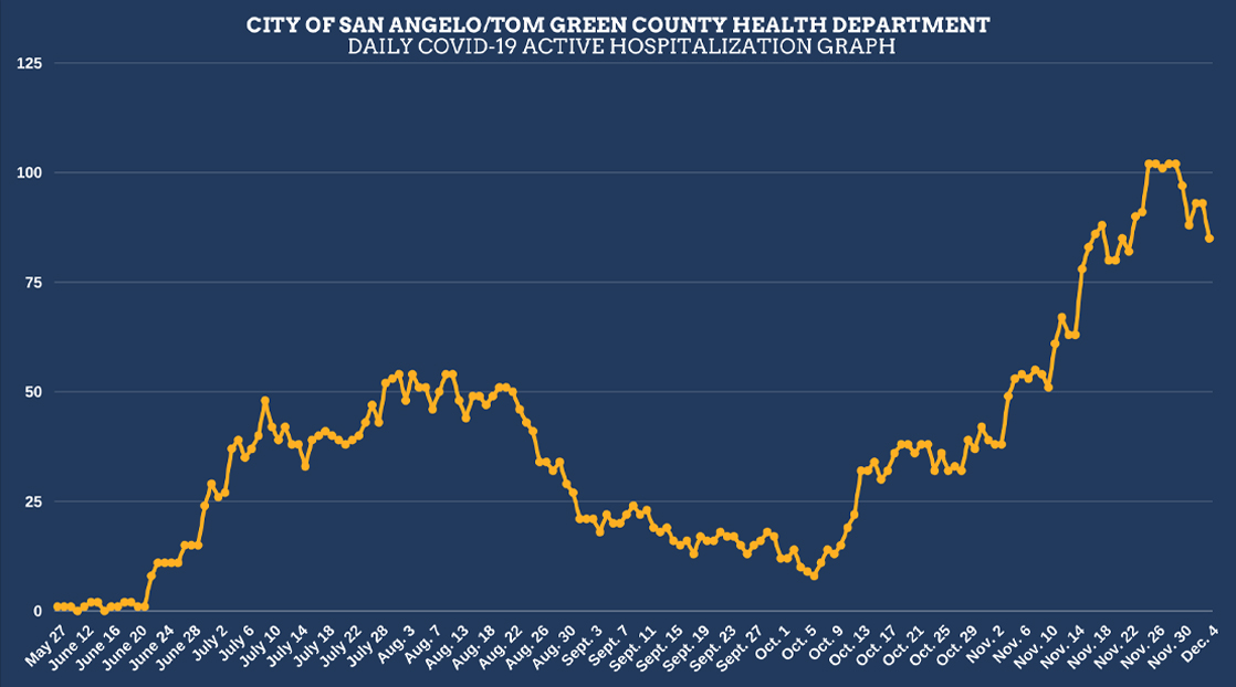 There are currently 85 patients hospitalized at Shannon Medical Center, dropping from the 93 reported on Thursday.