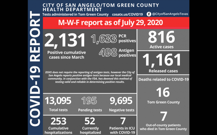 Coronavirus: 33 New Cases Reported in San Angelo Saturday