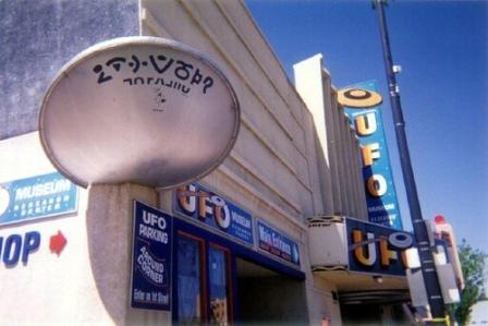 Anyway, the museum is very impressive, with lots of genuine reproduction alien flying saucers, and genuine imitation aliens. There also used to be a big flying saucer hanging out front, but they took it down recently while renovating, and put it out back.