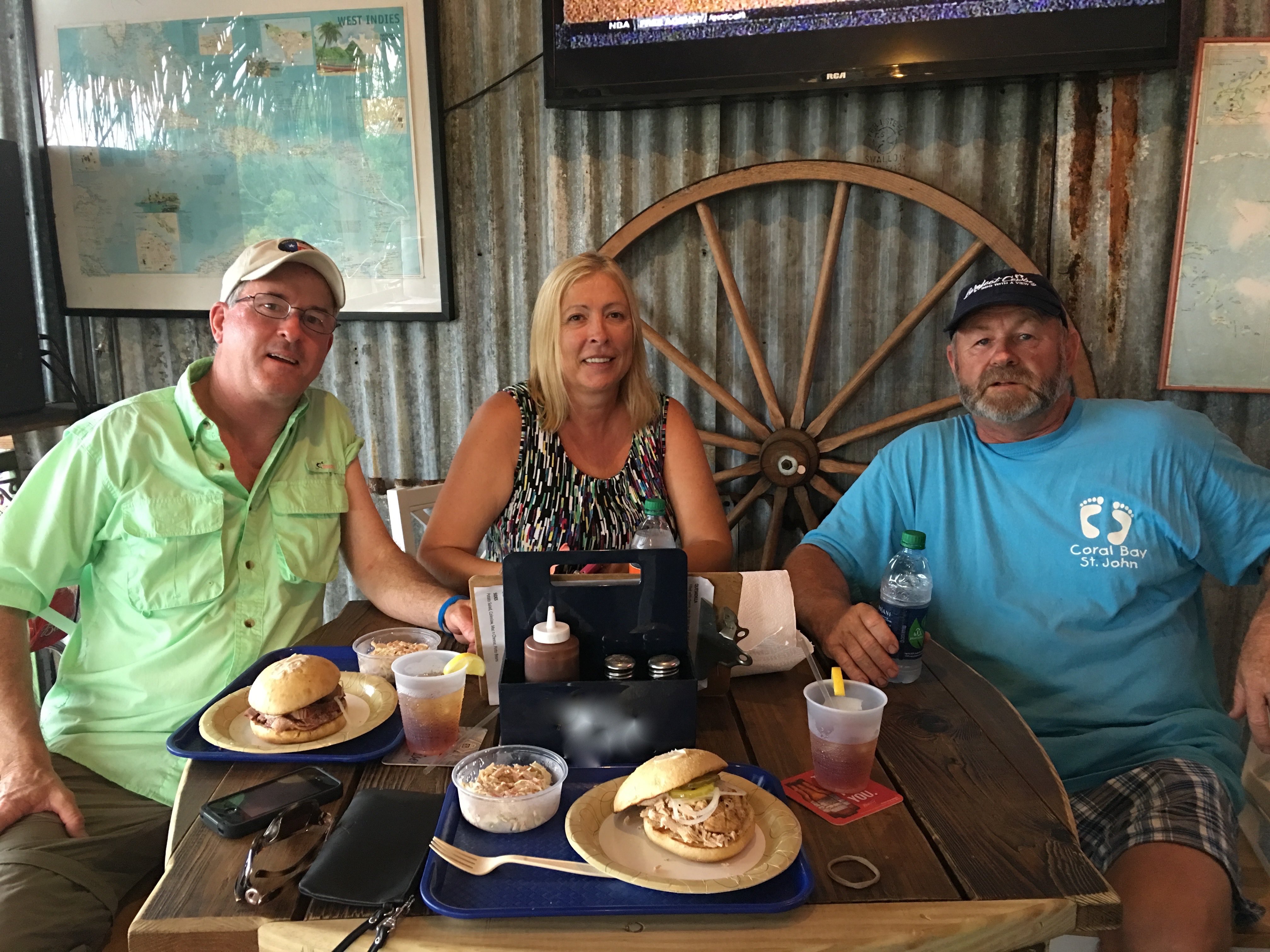After we got back from St. John to our hotel on St. Thomas, we found out that my childhood friend, Steve Horner, bought a barbecue place on St. John three months ago. It’s called the Barefoot Cowboy, but don’t hold that against him. I think it was already named when he got it. And I also hear you can get some really great barbecue there, and if there’s one thing that’s been lacking in every tropical paradise I’ve ever been to before, it’s good barbecue.