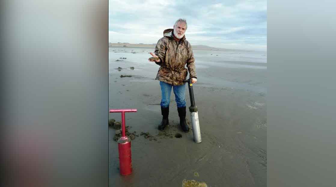 I never heard of a clam gun, and I had no idea if there was a season and bag limit on clams, so I did a little research. Turns out the clam gun isn’t a gun at all. It’s a T-post driver with a T-handle on top. What you do is, you walk along the beach looking for a little dimple in the sand, and you mash the pipe down into the sand and pull up a batch of it, and there will be a clam in that sand. Why they call it a gun I have no idea, but I have no doubt Washington state will soon ban them.