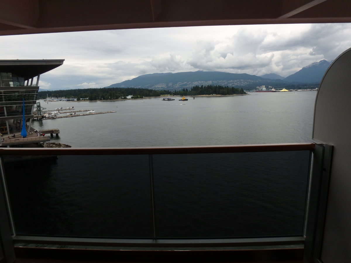 Our cabin was on Deck 8, which is pretty high up in the ship, and was situated just forward of ‘amidships,’ or ‘bow.’ We were on the starboard side, and our seaward wall featured a huge glass door leading to the small, private balcony outside. The railing was waist high, which allowed us to leap into the sea to escape the large stewards coming to drag us to the galley for meals. We could also sit in our stateroom and watch the picturesque seascape and landscape of the Inside Passage slip by, when we weren’t waving to the people on the other cruise ships as they leapt over their railings into the sea.