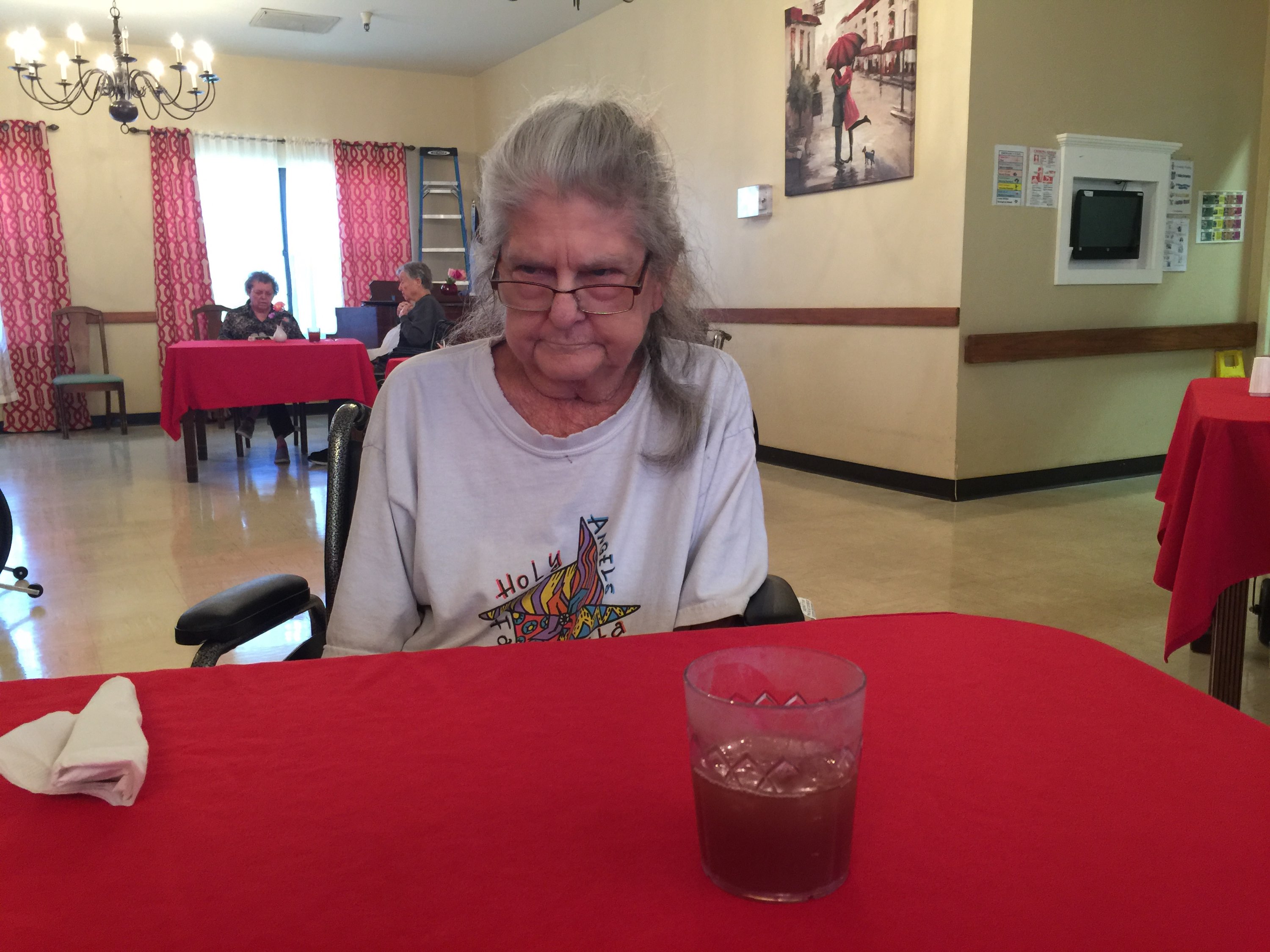 She has dementia, is blind and wheel chair bound and is prone to pneumonia and respiratory issues.