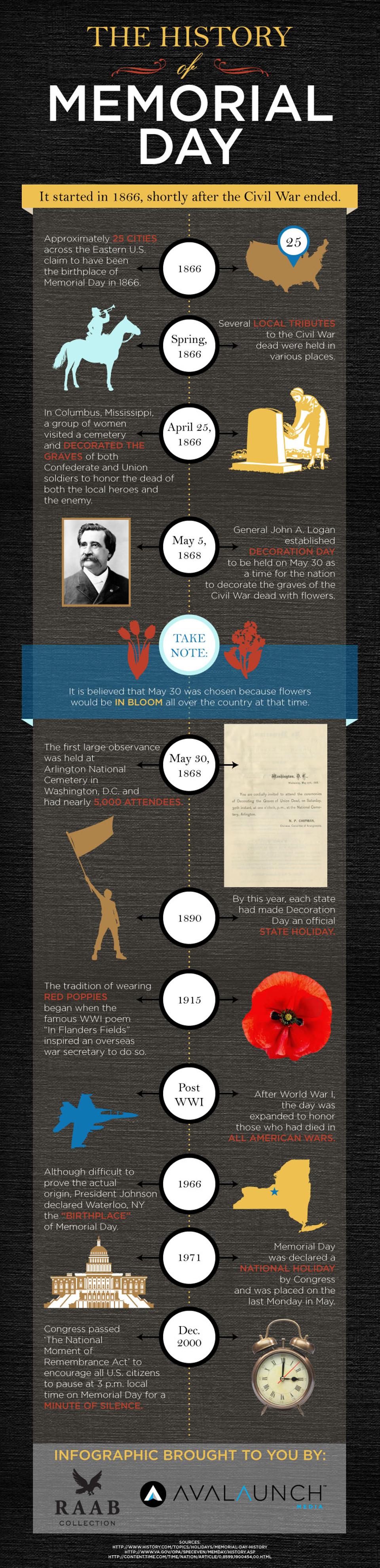 The solemn commemoration was first known as Decoration Day and originated in the years following the Civil War. It became an official holiday in 1971.