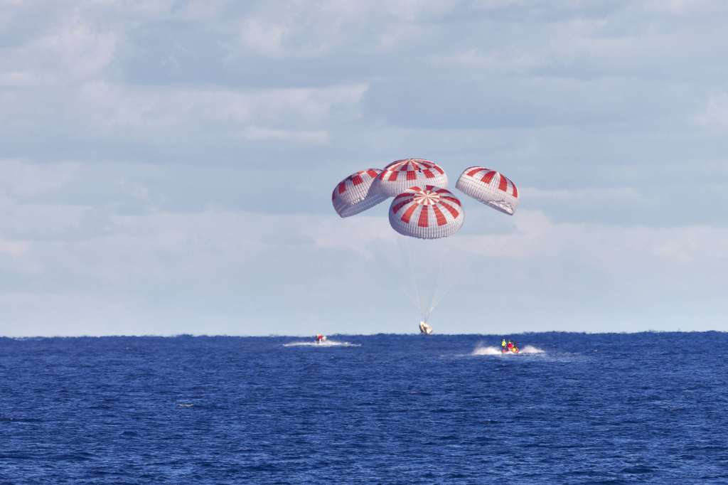 CAPE CANAVERAL, FL – Two NASA astronauts splashed down safely in the Gulf of Mexico Sunday for the first time in a commercially built and operated American crew spacecraft, returning from the International Space Station to complete a test flight that marks a new era in human spaceflight.