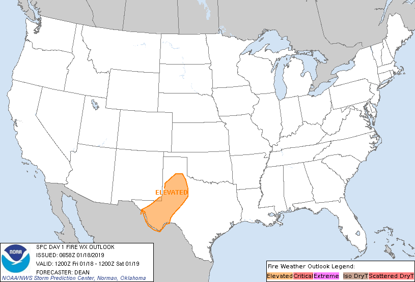 According to the National Weather Service office in San Angelo, elevated to near critical fire weather conditions will affect much of the area especially the Concho Valley. These conditions will be caused by wind speeds of 20 to 30 mph, low relative humidity values, and much warmer than normal temperatures. The threat of wildfires will be elevated Friday night and Saturday.