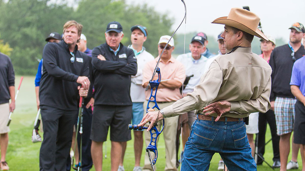 Frank Addington, Jr. is an archery marksman. The Boerne native's demonstrations of archery techniques have wowed audiences across the U.S. for over two decades. The hallmark of his show is hitting a flying baby aspirin through the air with an arrow shot from his Hoyt bow. Addington said his purpose is to encourage kids of this generation to leave the video games and TV alone for a while to spend time with family outdoors.