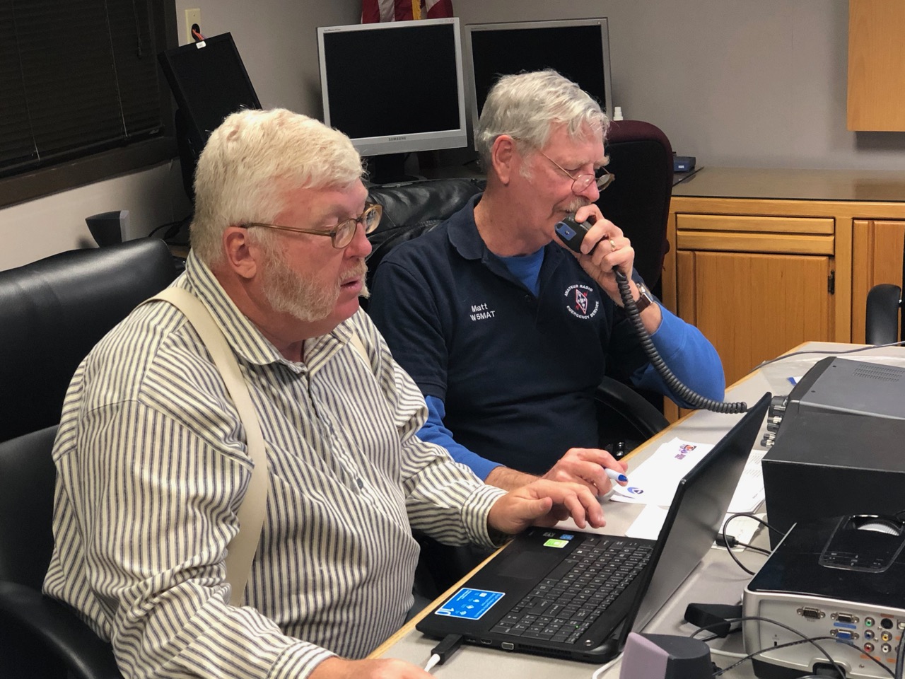 Working the radios early Saturday morning were SKYWARN volunteers King Walker and Matt Healy. Walker, a retired military veteran and life member of the VFW, works as a security guard. Healy and his wife Leslie are active with the San Angelo Chamber of Commerce and own a real estate brokerage, San Angelo Homes. We caught them relaying scenario weather information from the NWS in Lake Charles, Louisiana over the radio during an exercise Saturday morning.