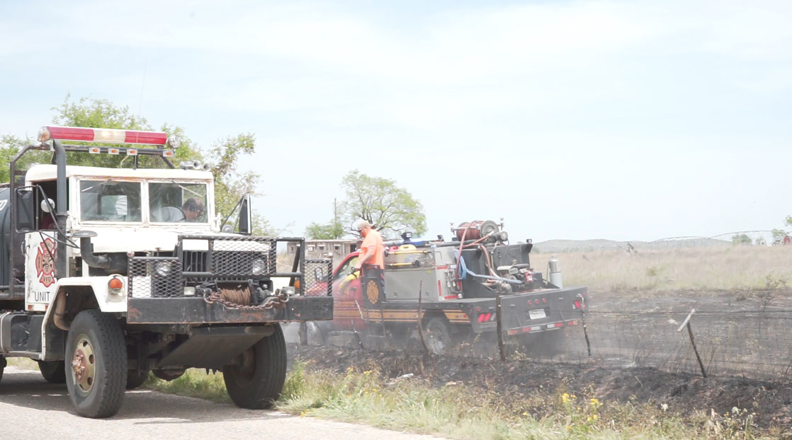 SAN ANGELO, TX – Grape Creek Volunteer Firefighters battled the wind and a grassfire near the intersection of Ballard Rd. and Pyburn Ln. Friday beginning before noon.