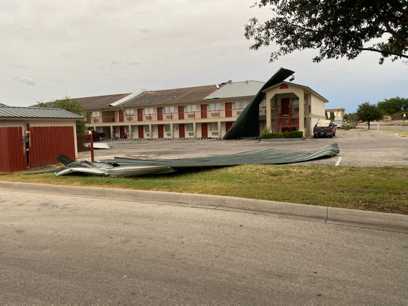 The Days Inn hotel next to the Texas Roadhouse on Loop 306 near College Hills Blvd. lost its metal roof.