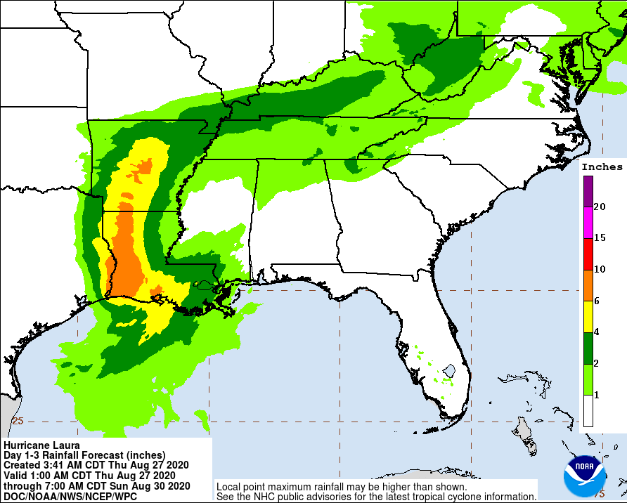A northeastward to east-northeastward motion is expected tonight and Friday. On the forecast track, Laura will move northward across western and northern Louisiana through this afternoon.