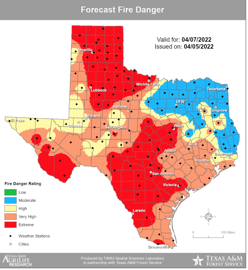 Texas is in the early stages of drought with below average rainfall, above average temperatures and extremely dry fuels.