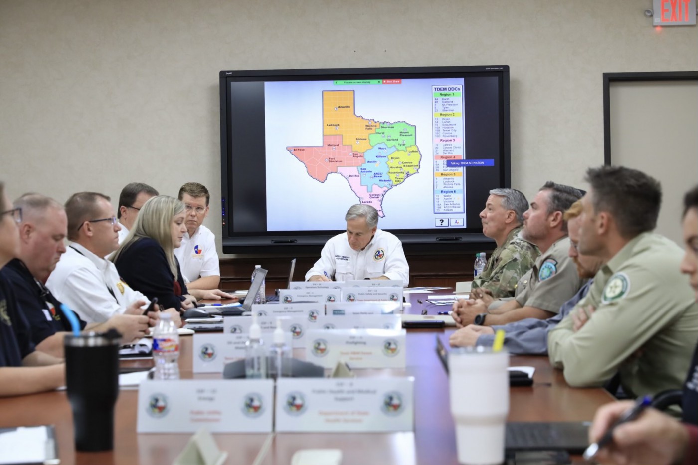 AUSTIN – Governor Greg Abbott Saturday led a statewide weather call with more than 350 local emergency response officials, including mayors, county judges, first responders, and private sector partners, from all regions across Texas. The Governor also received a briefing from members of the Texas Emergency Management Council on the latest state agency actions at the Texas State Emergency Operations Center (SOC).