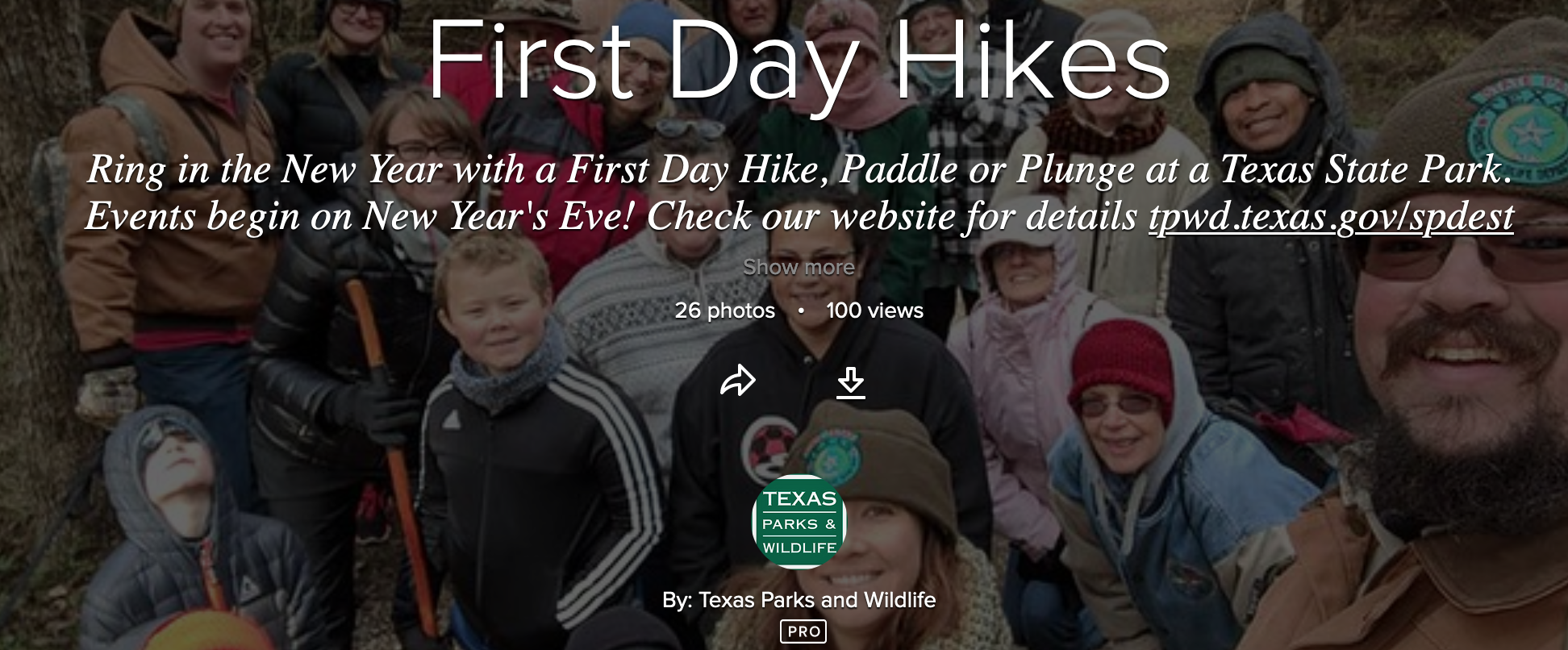 AUSTIN— Three, two, one ... Happy Birthday, Texas State Parks! Park lovers everywhere are invited to help Texas State Parks begin celebrating 100 years Jan. 1 with a First Day Hike. Almost every Texas State Park will host ranger-guided and self-guided walks, bike rides, paddling trips and polar plunges in honor of the national initiative aimed at getting people outdoors.