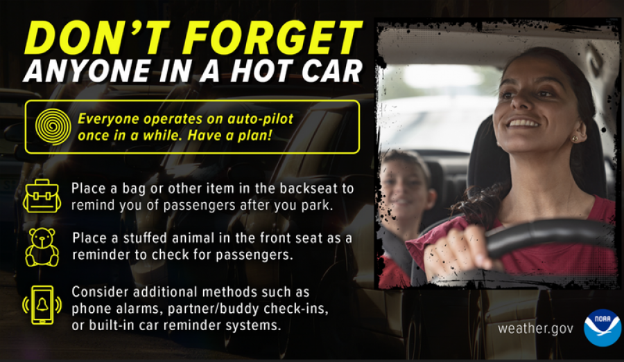 The community is also reminded to practice heat safety, including staying hydrated and checking on the elderly, sick, and those without air conditioning. Residents are advised to avoid leaving children or pets in vehicles, as temperatures inside can rapidly rise to dangerous levels.