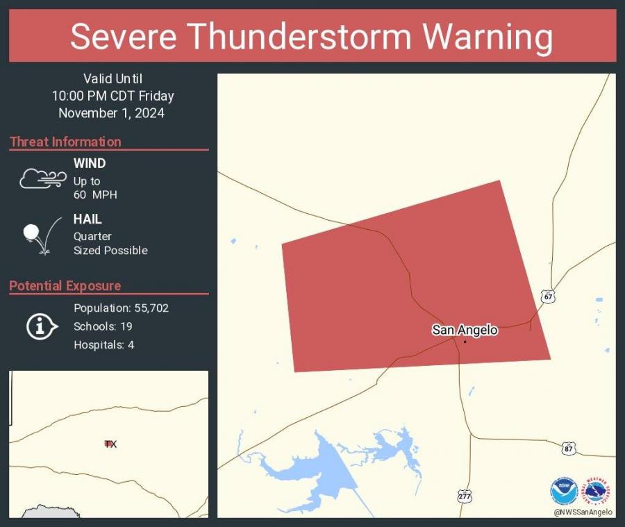 SAN ANGELO, TX – Northern San Angelo and parts of Tom Green County are under severe weather conditions, prompting multiple warnings and highway closures.