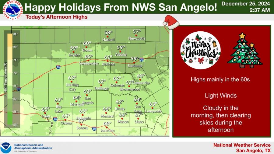 SAN ANGELO, TX — West Central Texans woke up to cloudy skies this Christmas morning, but a pleasant afternoon is on the horizon, with temperatures climbing into the 60s across the region.