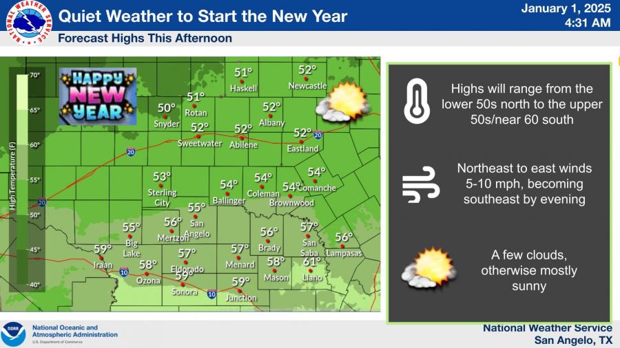 SAN ANGELO, TX — The Concho Valley is starting the new year with seasonably mild weather, according to the National Weather Service in San Angelo.