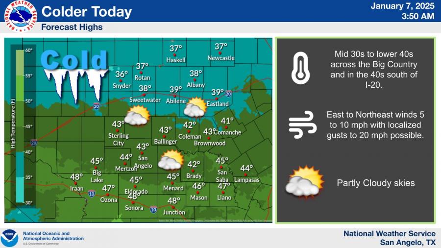 Temperatures across the region are expected to remain below freezing during the mornings and struggle to reach the low 30s to low 40s during the day. Highs for today are forecast to be in the mid-30s to lower 40s, with slightly warmer conditions in the low 40s south of I-20.