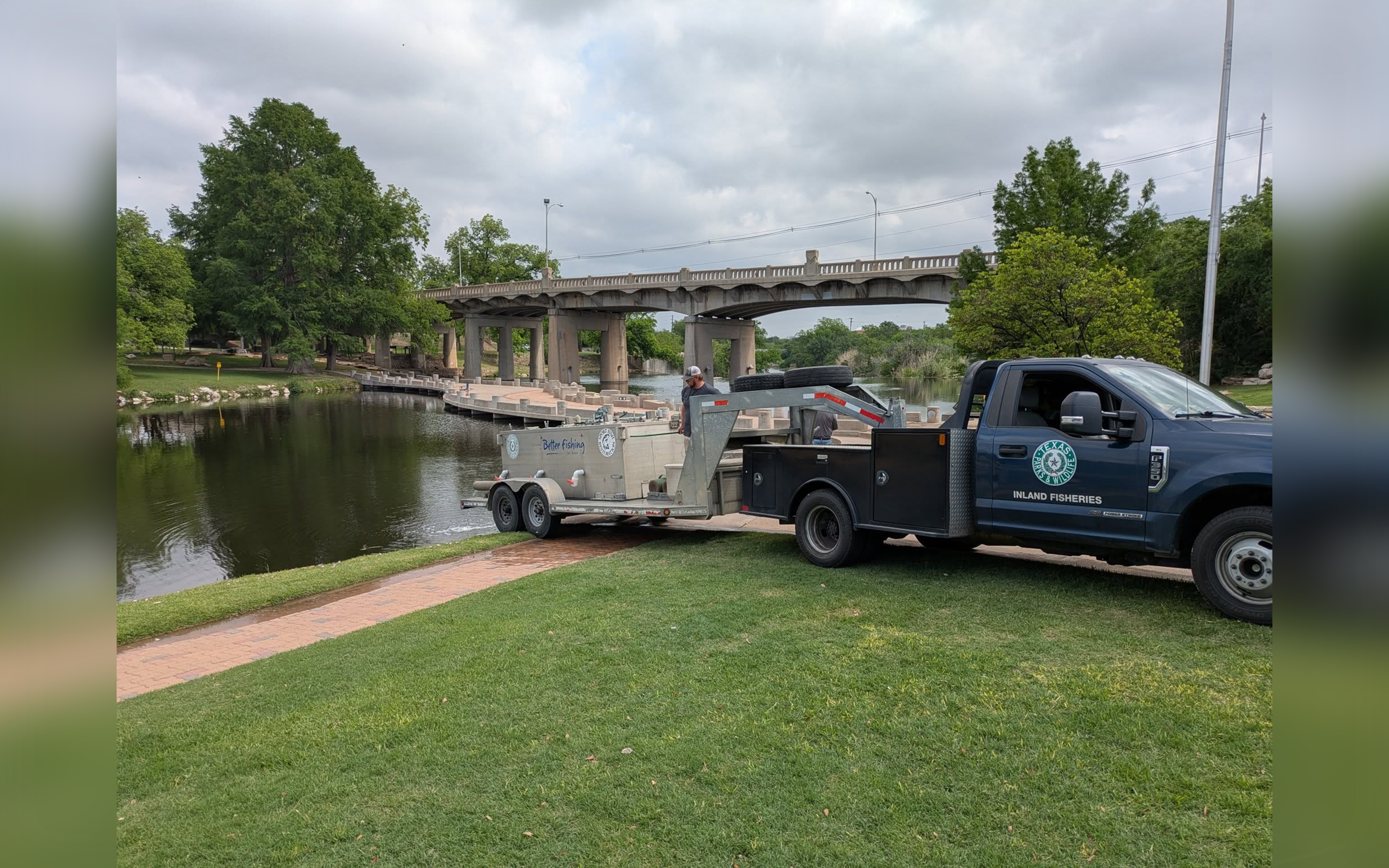 The fish were released near the river section between Oakes and Irving streets. Stockings will continue every two weeks through the end of October. The program aims to make fishing more accessible by placing fish in urban waters across Texas.