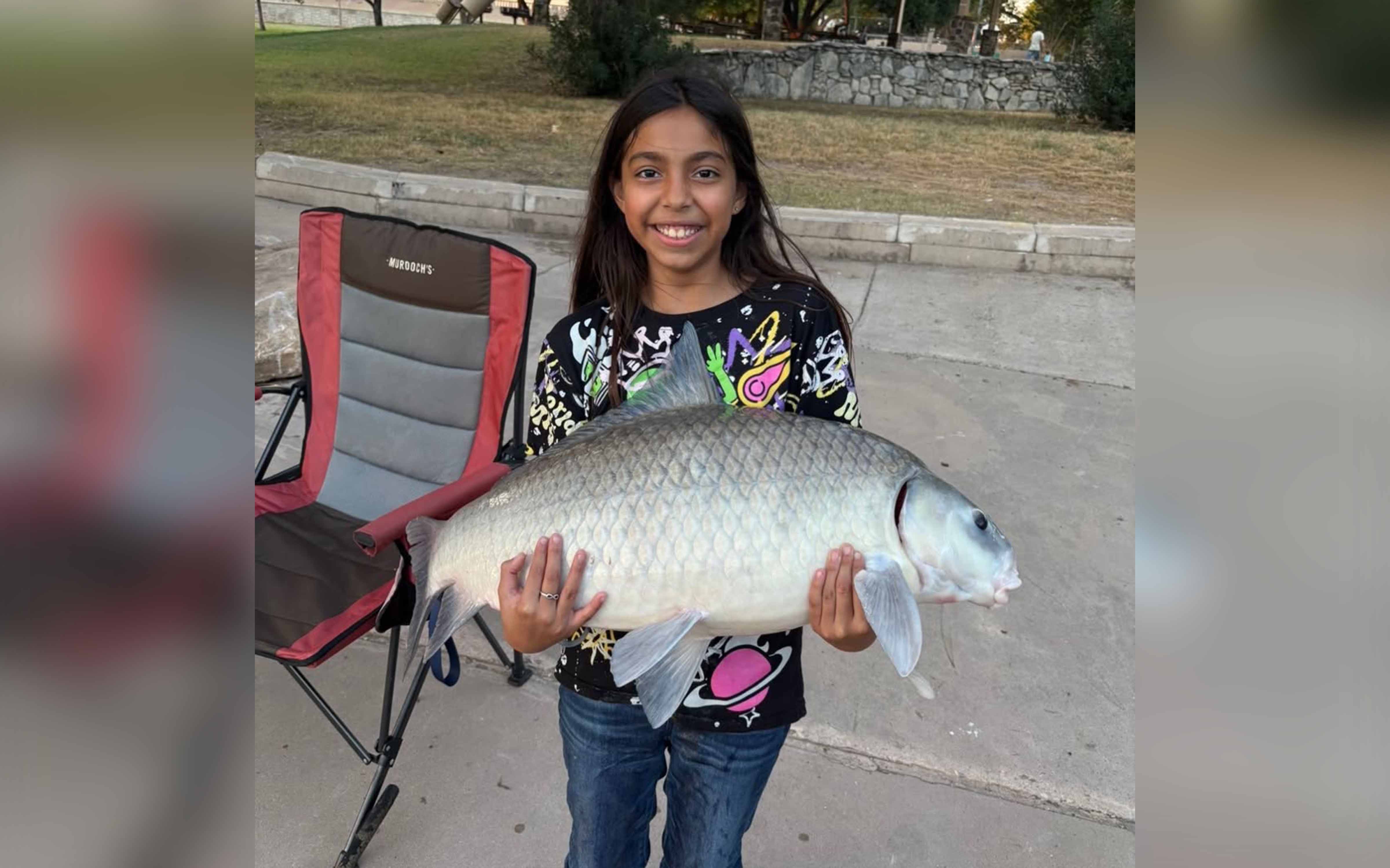 Niyeleigh Fernandez was fishing with her family at Glenmore Park when she hooked the fish, which measured 33-3/4 inches long and weighed in at 27.95 pounds, according to Inland Fisheries San Angelo District of Texas Parks and Wildlife. Officials said the catch is a pending waterbody record for Lone Wolf Lake, the section of the South Concho River above Lone Wolf Dam.