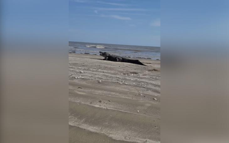 An unexpected sight awaited a family at Sea Rim State Park in Sabine Pass, Texas, when they encountered a massive alligator lounging and feeding on the beach last Saturday.