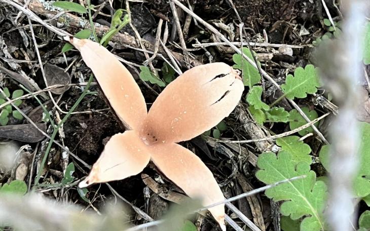 A rare fungus known as the Texas Star Mushroom (Chorioactis geaster), also known as the "hissing mushroom," was spotted at Inks Lake State Park on Tuesday.