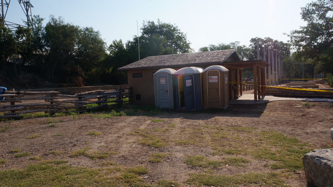 Temporary public toilets have been placed in The Bosque along the Concho River walk as repairs are made to the permanent facilities.