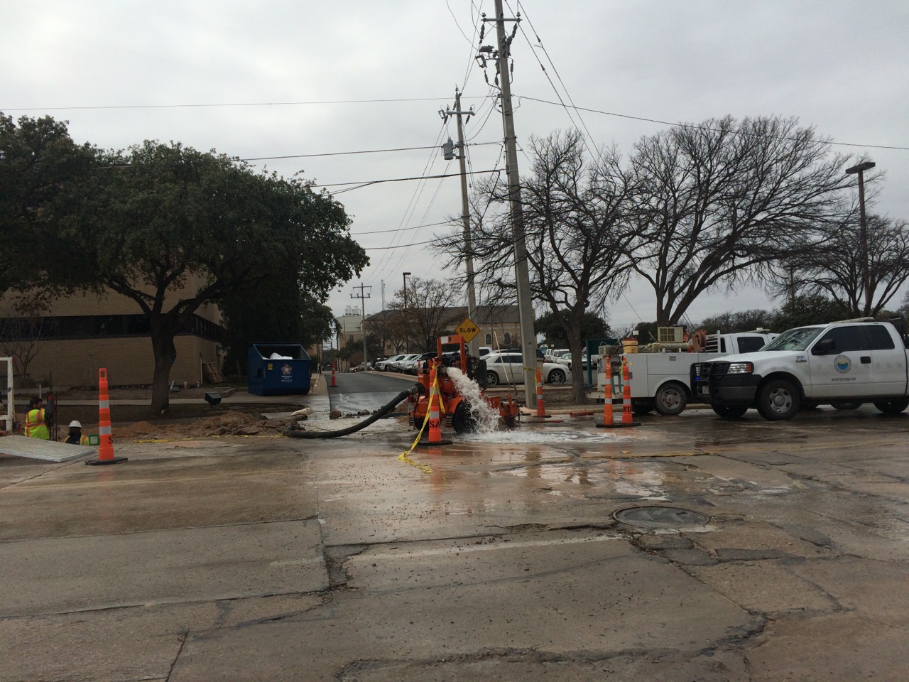 According to City of San Angelo Public Information Officer Anthony Wilson, the crews were cutting into a valve in preparation for making a repair after 5 p.m. to a six-inch water main. The crews were avoiding the need to disrupt water service to the clinic during its normal business hours.