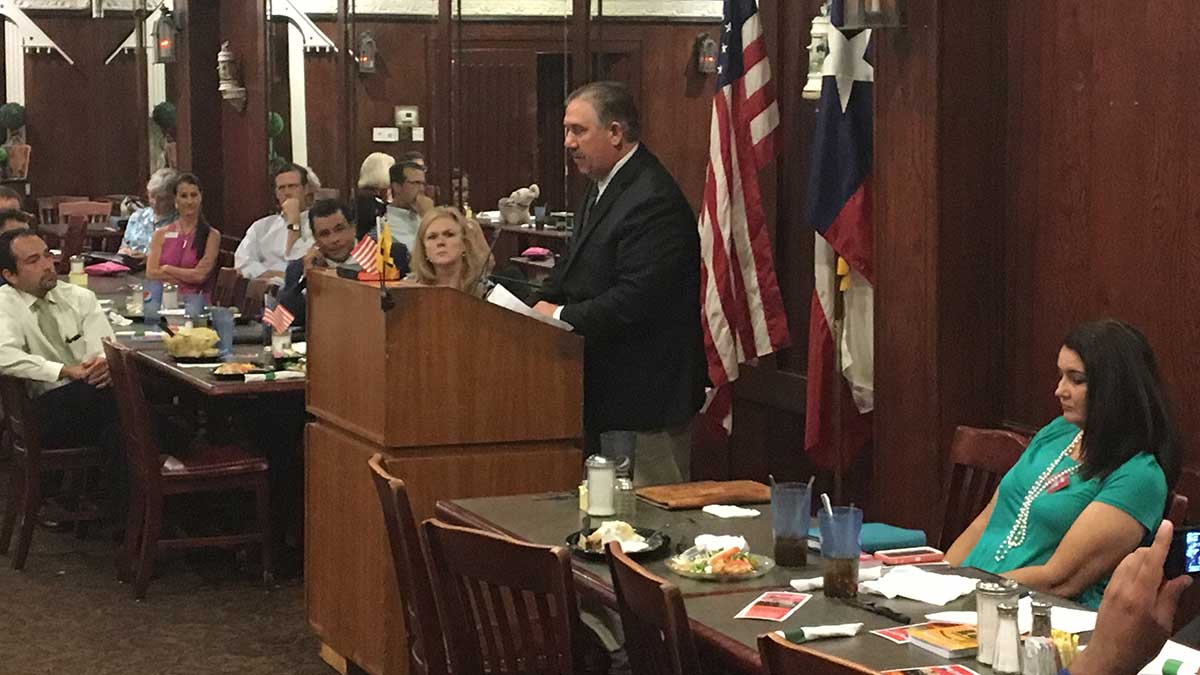 Chief of Police candidate Frank Carter warned San Angeloans that homelessness, crimes, and drugs from Mexico will soon arrive here via the Ports-to-Plains Corridor. He made his remarks this afternoon at a candidate forum sponsored by the Pachyderm Club at Zentner’s Daughter Steakhouse.