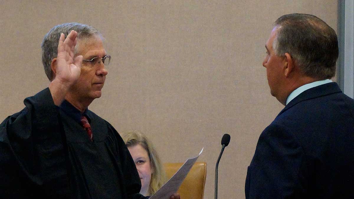 Standing in front of a packed council chamber inside the McNease Convention Center, Carter stood and took the oath.