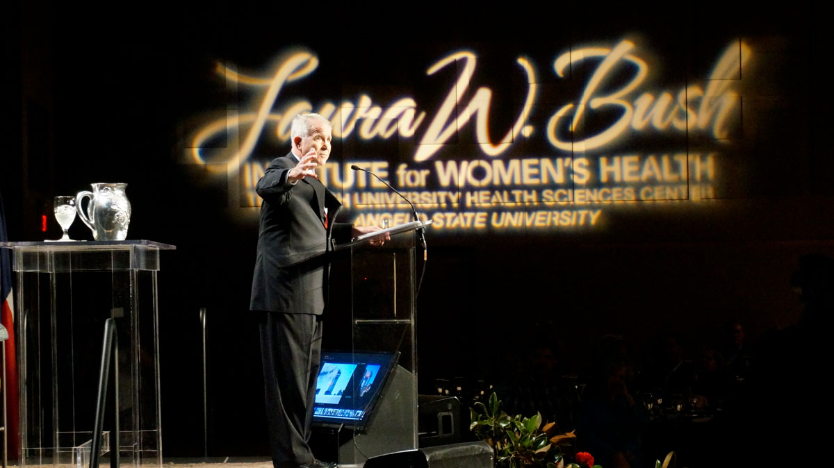 Retired Lt. Col. Oliver North, a central figure in the late-1980s Iran-Contra Affair and now a Fox News on-air celebrity, spoke at the McNease Convention Center yesterday at the annual luncheon for the Laura W. Bush Institute for Women’s Health. The 45-minute speech was well received and was followed by a 15-minute Q&A with Goodfellow Air Force Base’s 17 TRW commander, Brigadier General-Select Michael Downs.