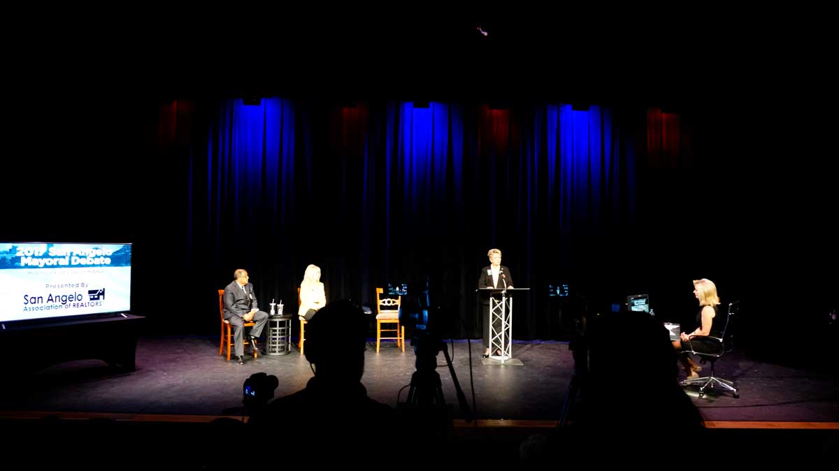 SAN ANGELO, TX — KLST evening news anchor Carolyn McEnrue served as the forum moderator at Monday evening’s mayoral forum at the Brooks and Bates Theater inside the Stephens Performing Arts Center. This is the last candidate forum before the May 6 mayoral election. About three-quarters through the otherwise uneventful question and answer format, McEnrue dropped the trash bomb.