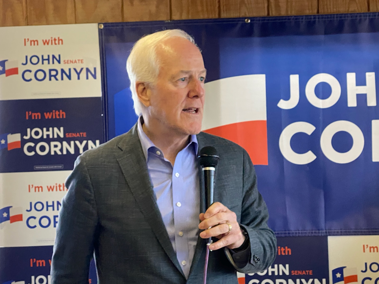 Cornyn flew into Mathis Field Regional Airport and spoke to supporters at Packsaddle BBQ on Knickerbocker Rd.