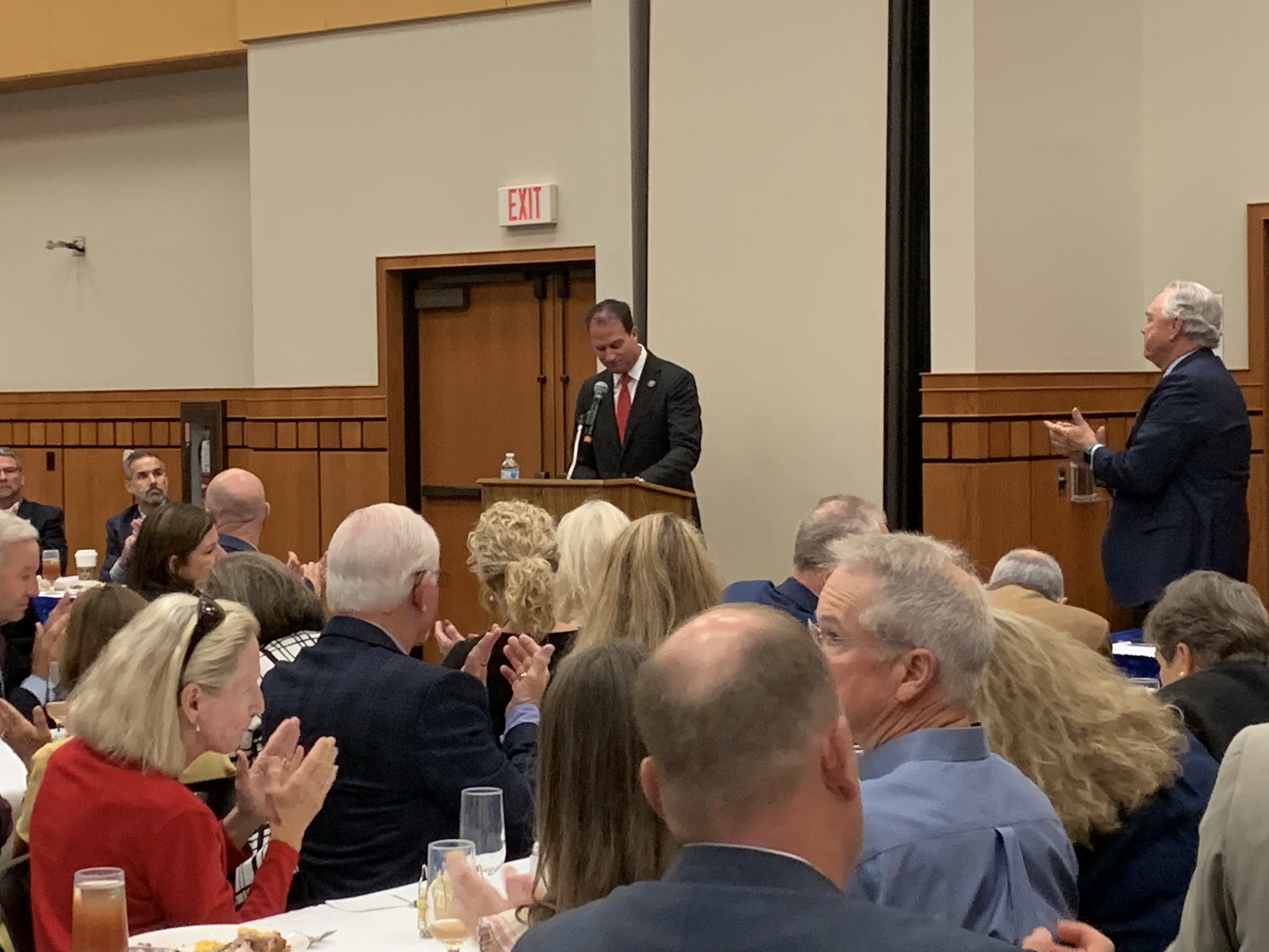 Following his speech the crowd gave a standing ovation and then a number of local leaders, including Drew Darby, told the crowd how much they appreciated Pfluger.
