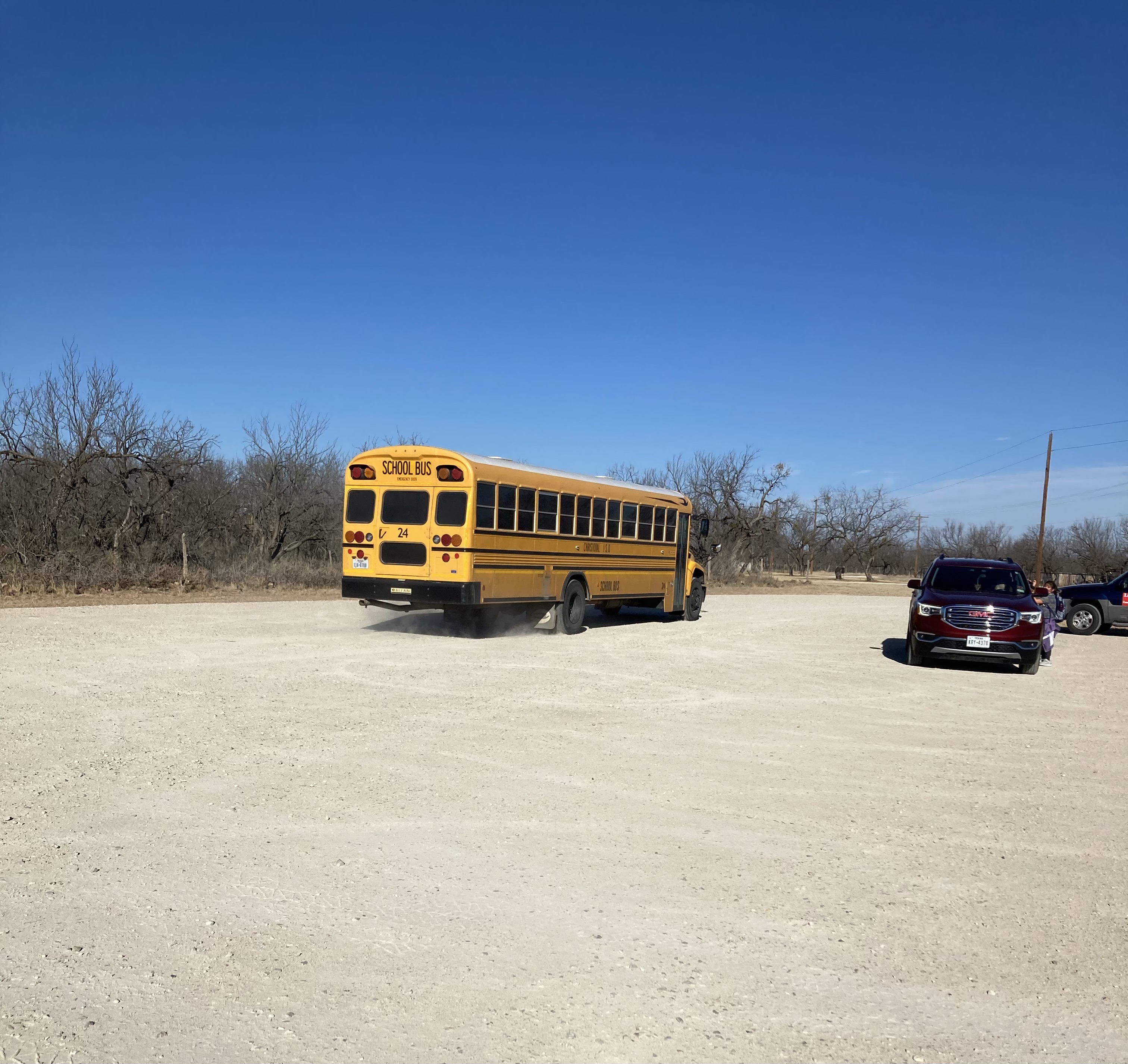 About three years ago, I was trying to work with the Christoval ISD on the use of a corner piece of my property for a bus stop, to provide a safe place for students and their families that live in our portion of the subdivision to load and unload the school bus.