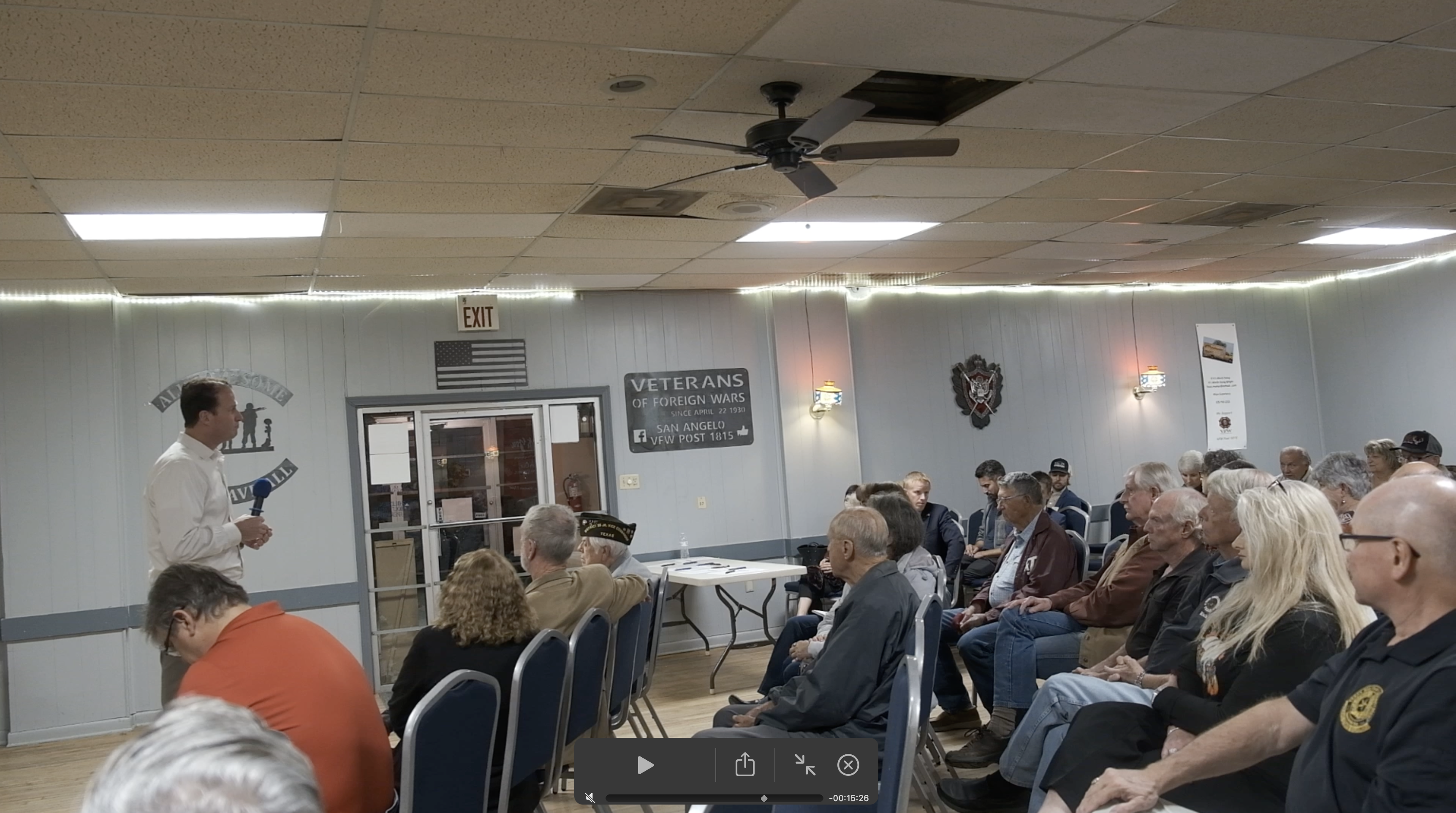 SAN ANGELO, TX — Congressman August Pfluger (TX-11) addressed residents Monday night at the San Angelo VFW Post 1815 during a town hall meeting, discussing legislative priorities and recent political developments.