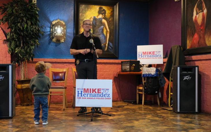 SAN ANGELO, TX — Surrounded by 21 San Angelo police officers, former officers, and current and past law enforcement professionals, Lt. Mike Hernandez, candidate for San Angelo’s chief of police, outlined his plans for the first 100 days.
