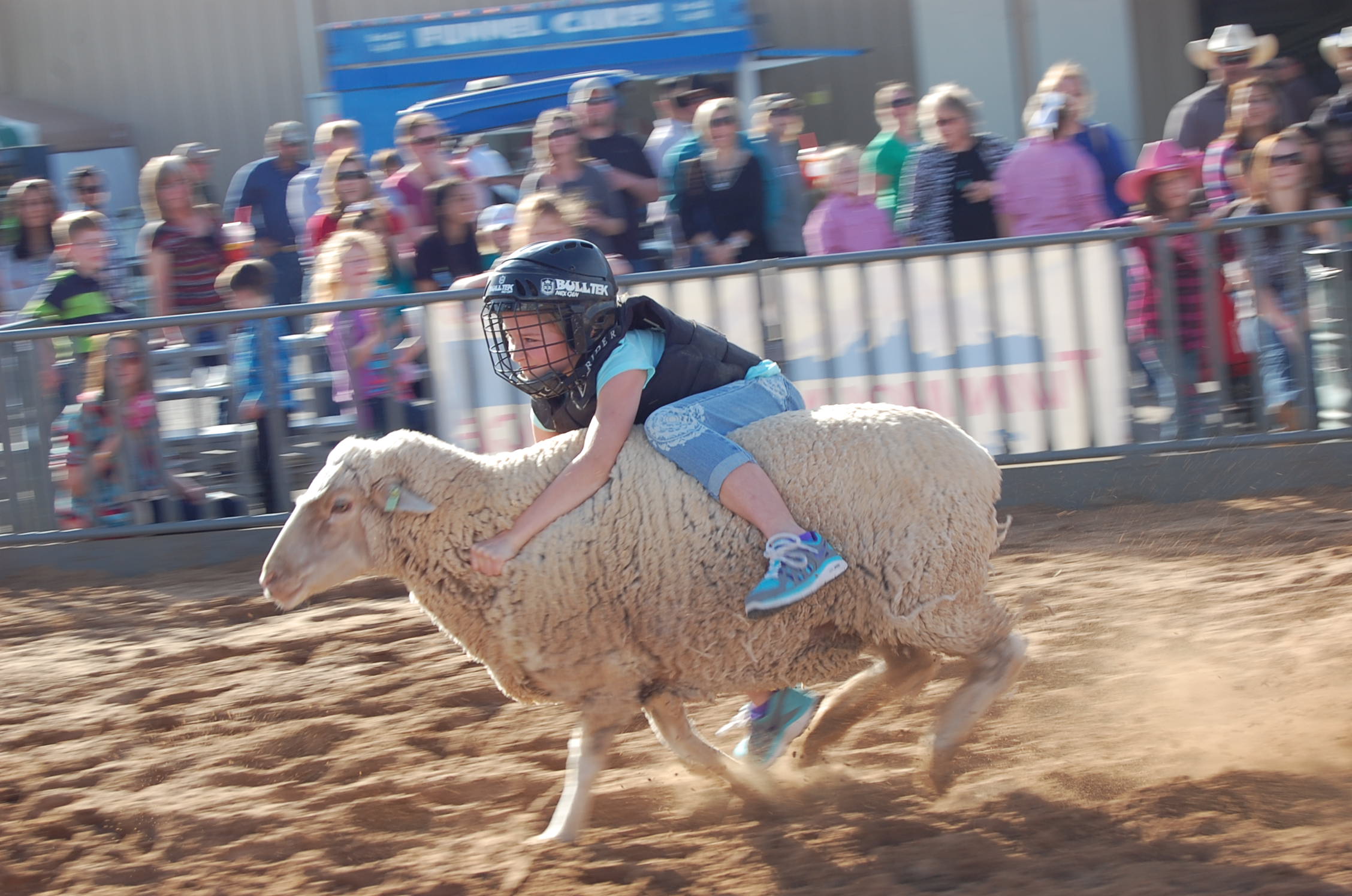 Mutton busting on the midway will take place on weekends throughout the rodeo at varying times.