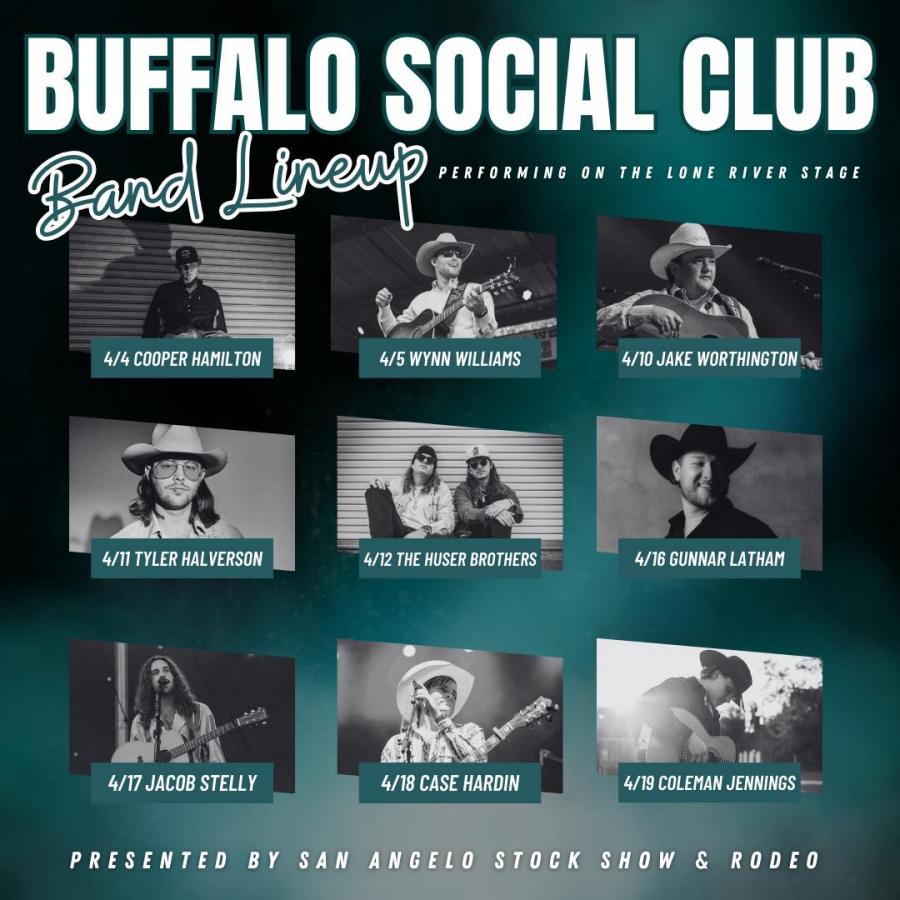 SAN ANGELO, TX – The Buffalo Social Club will host a series of live music performances in April during the San Angelo Stock Show & Rodeo. Concerts will take place on the Lone River Stage.