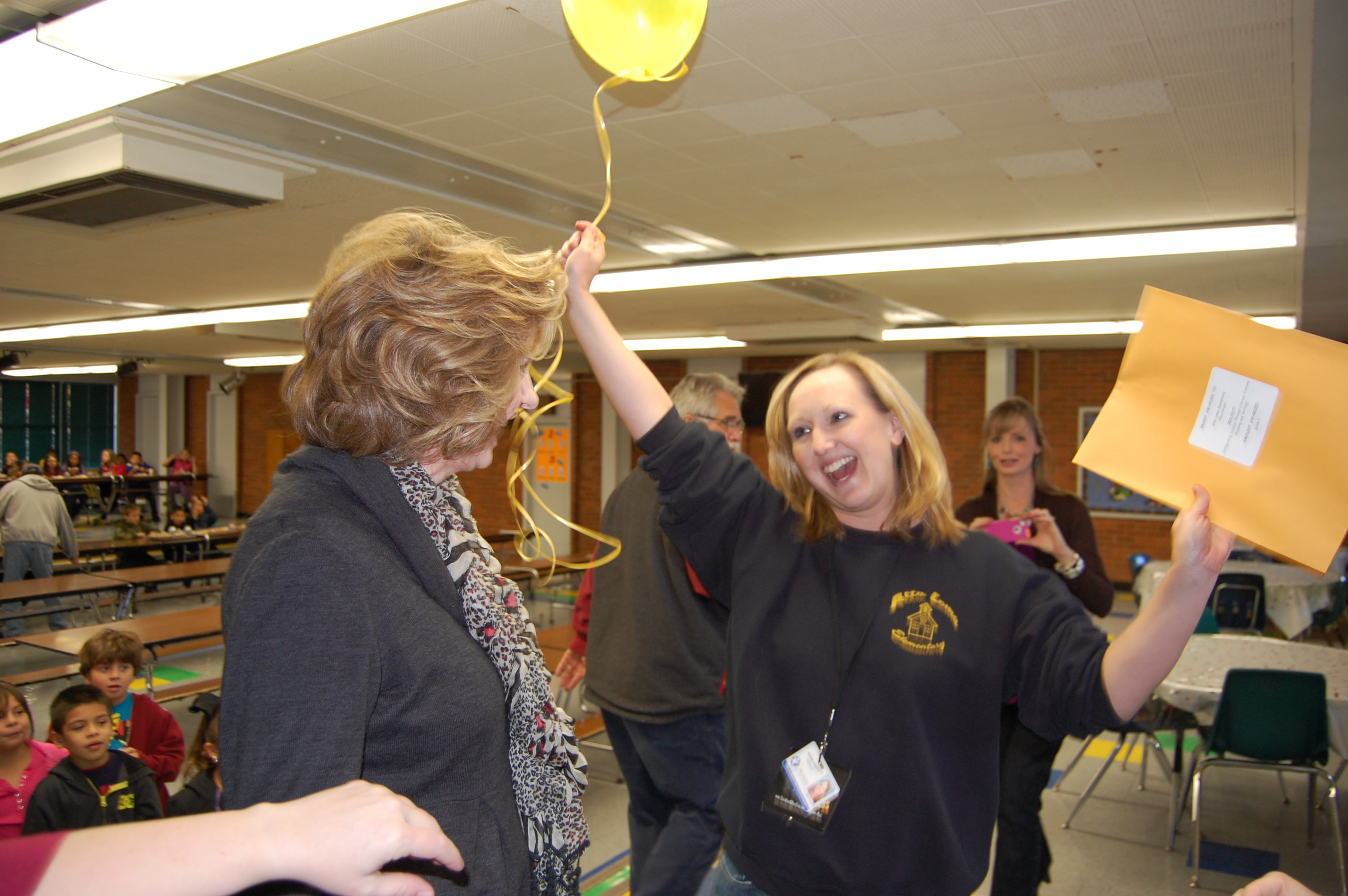 As the bus stopped at each school and the prize patrol popped out, each teacher was surprised in her classroom with a balloon and a manila envelope containing the check and all instructions.