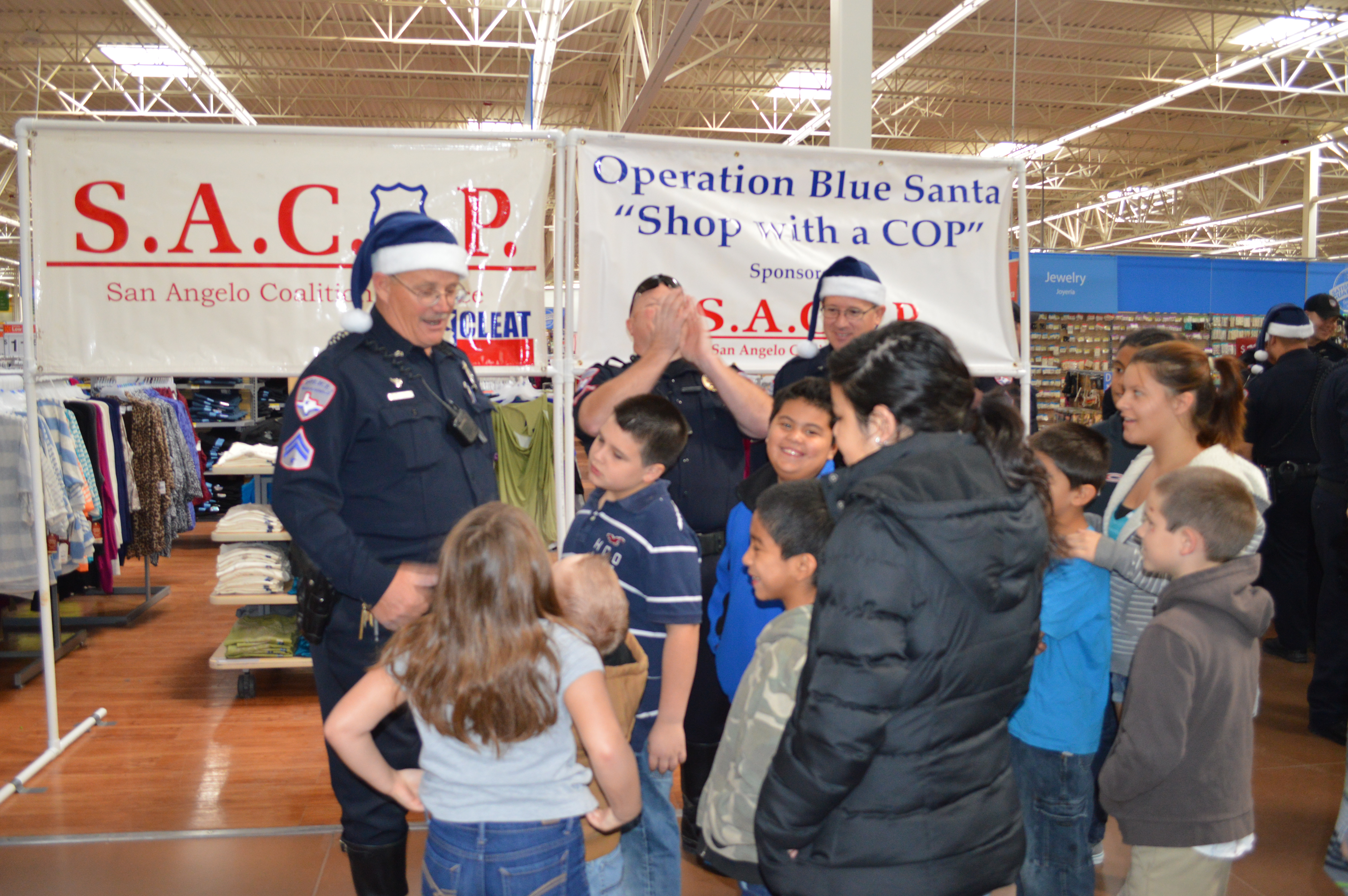 About twenty-five police officers were gathered in Walmart Saturday morning. The task? Operation Blue Santa.