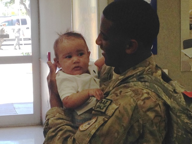 Reuniting his new family was one airman who had not seen his newborn child ever. “His wife just separated from the military and spent time with her family to have the baby while he was away,” Lee explained.