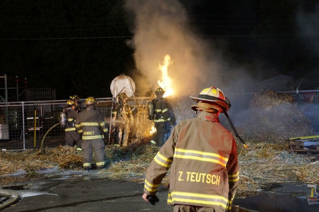 Not to diminish the idea that arson may be to blame in this fire but… I actually witnessed the trailer of hay catching fire and I’m fairly certain the trailer itself was to blame. One of the back wheels of the trailer was smoking as the truck and trailer were coming off the highway and over the bridge to the 4 way stop. The hay flamed up shortly after they stopped. I would assume they had a trailer brake locked up or were dragging a flat tire. Just my observations.