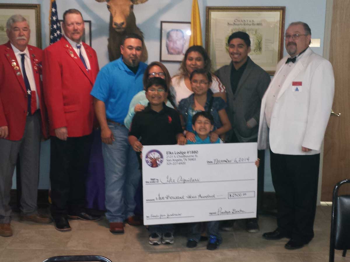 This week, the local Elks presented a $2,300 check to Aguilar and her family. Also attending the presentation were officials from the Texas Elks State Association.