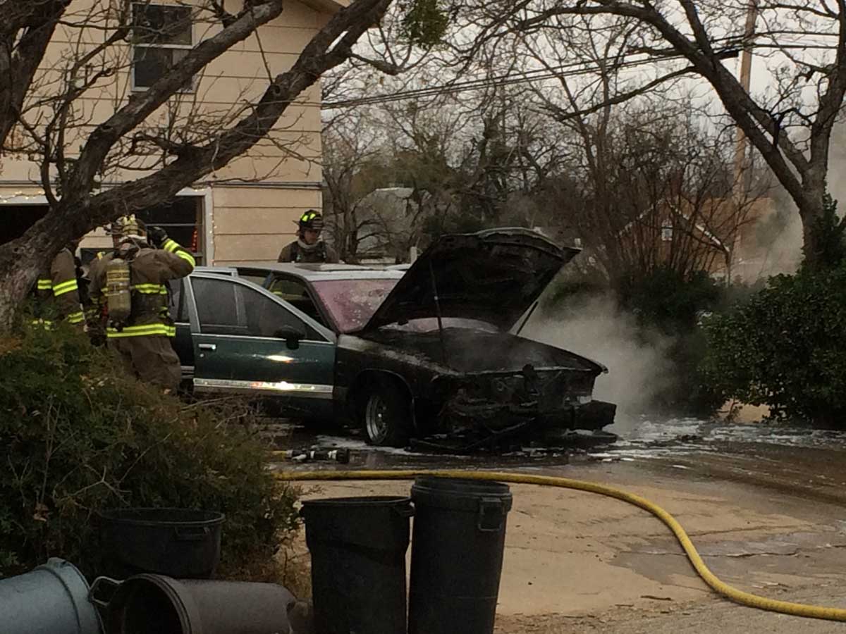 The San Angelo Fire Department responded to a vehicle fire in the driveway of a residence in the 600 block of Preusser Street at 8:40 a.m. Saturday morning.