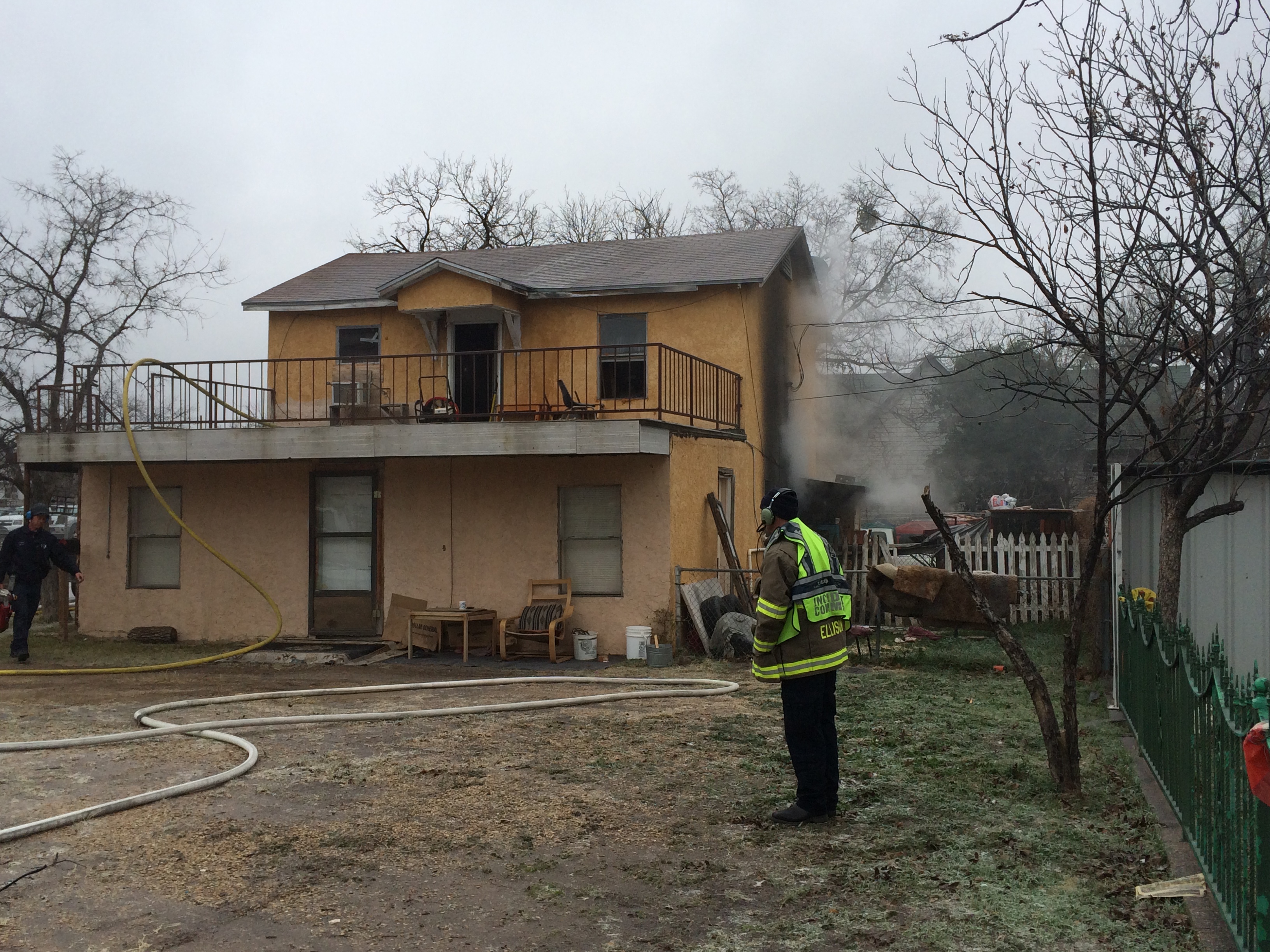 San Angelo firemen are working both stories of the structure, in what has become a non-stop morning of calls for service since the ice storm hit last night.