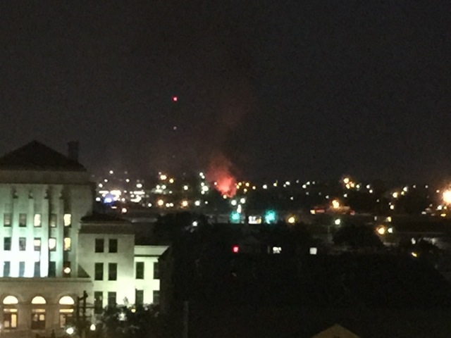 Large structure fire erupted Wednesday evening on E. 14th Street. When the initial call went out to the San Angelo Fire Department at 6:20 p.m., only a plume of black smoke was visible. As the firefighters were responding to the first alarm, flames grew. First they were 10 feet in the air, then 20. We estimate that before the flames were knocked down, they were as high as 60 feet in the air.