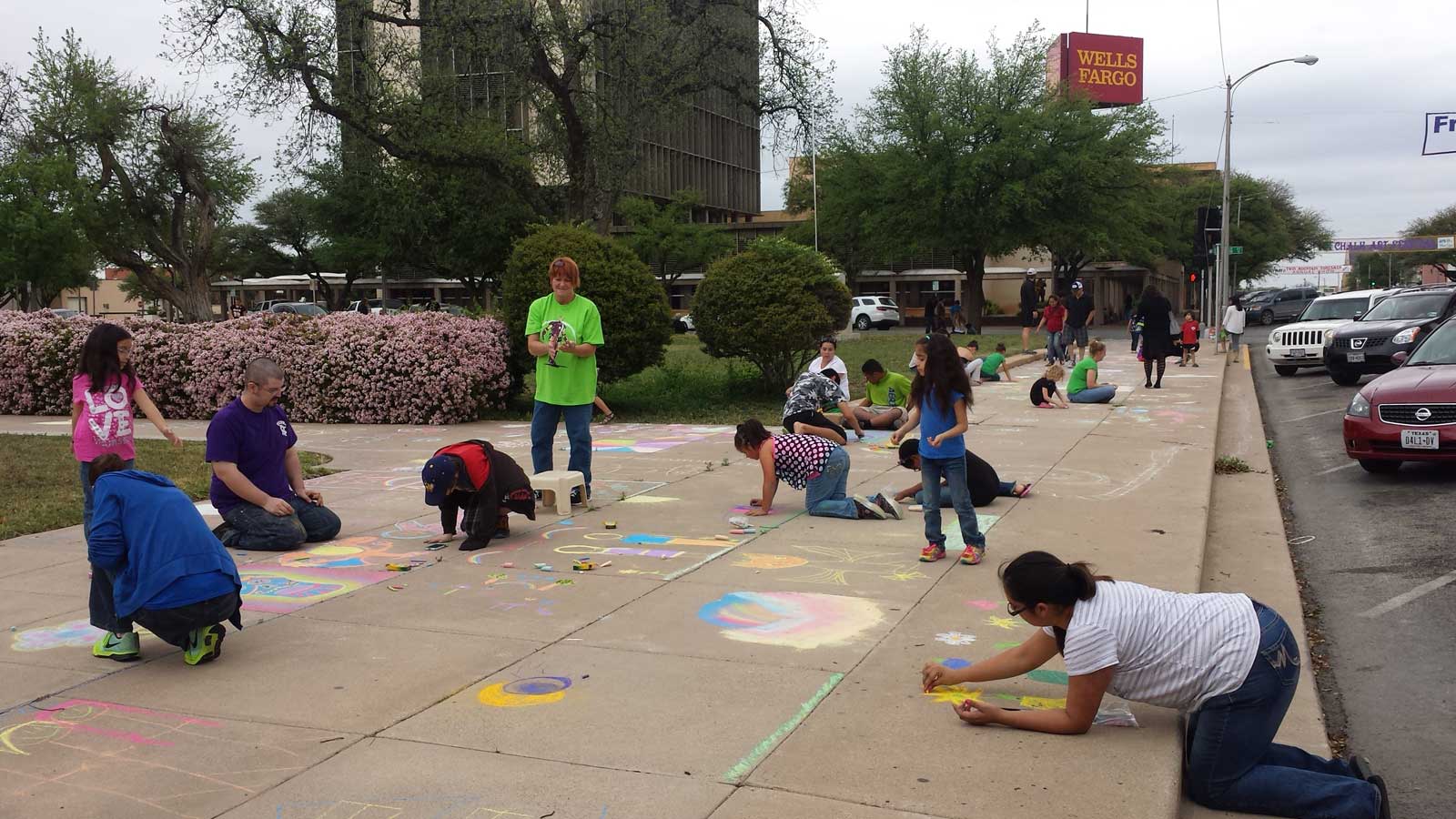 By noon, the sidewalk and courtyard concrete were filled with colorful artwork of all by artists of all ages. You didn’t need to be Leonardo da Vinci to join in on the chalk art fun, just an imagination.